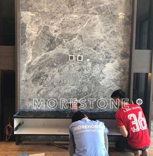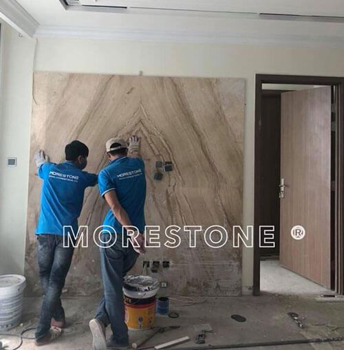 MORESTONE xin giới thiệu một số công trình sản xuất, thi công, lắp đặt các mẫu đá tự nhiên ốp tường trang trí phòng khách đẹp, sang trọng