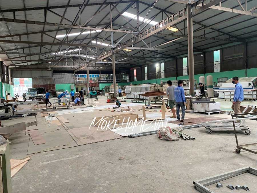 khách hàng duyệt bản vẽ nội thất xong sẽ tiến hành sản xuất trực tiếp tại xưởng MoreHome.
