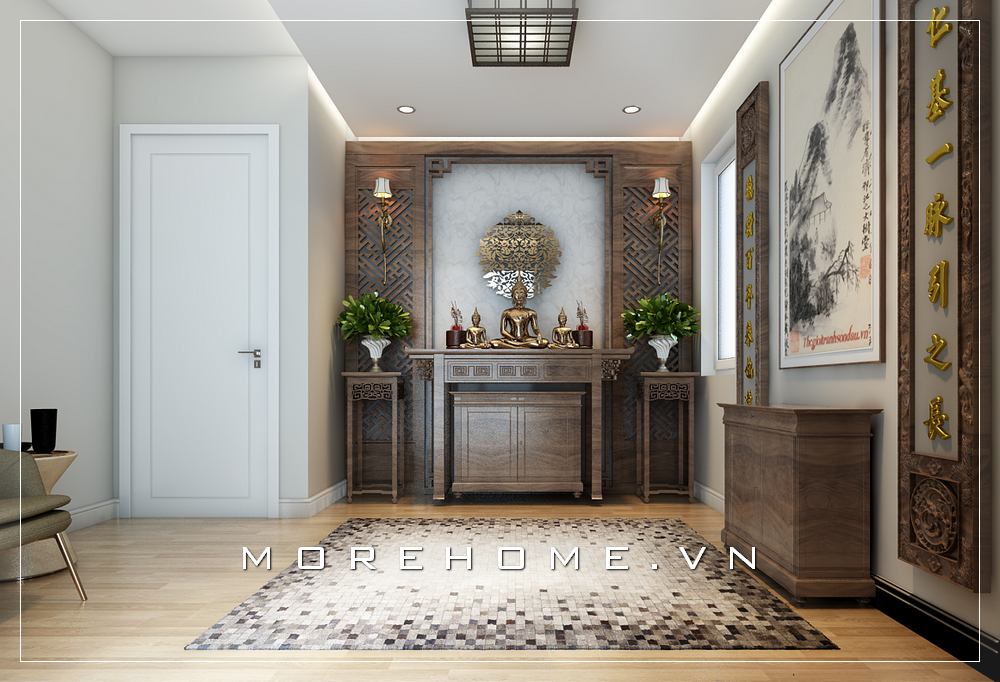 Bàn thờ gỗ hiện đại - Thiết kế nội thất phòng thờ không thể thiếu trong mỗi gia đình việt.